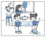 “二十三,糖瓜粘。二十四,扫房子……”请你观察图片,想一想:这是什么时候?他们在做什么?把你想到的用一两句通顺的话写下来。不会写的字用拼音代替。