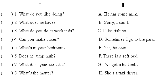 四、在Ⅱ栏中找出与Ⅰ栏相对应的答句,并将其序号填在题前括号内。(8分)