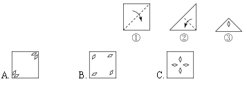 3.将一张纸对折后剪去三个圆,展开后是哪一个?(3分)