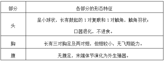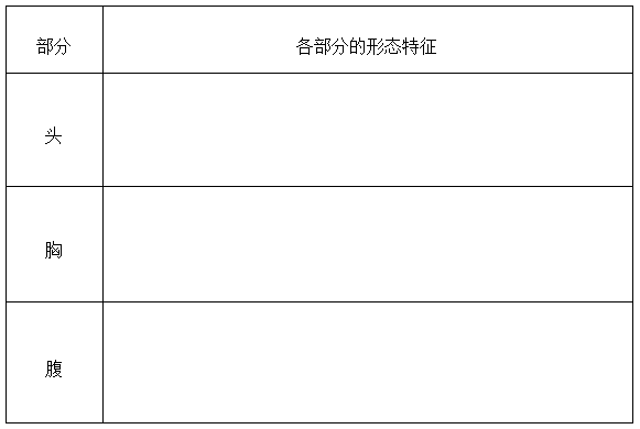 1. 观察蚕蛾身体各部分的形态特征,完成下表。(15分)