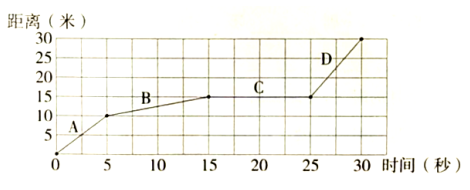 离。他30秒内一共走了 米。(时间段填“A”“B”“C”“D”)