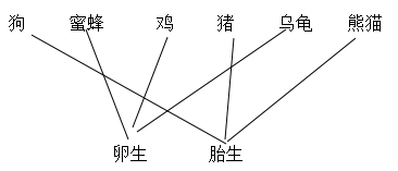 把下面6种动物与相对应的繁殖方式用线连起来。