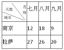 (2)从表上看第三季度南京和拉萨相比,________雨天多。