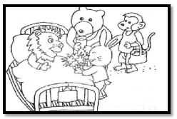 图中谁生病了?都有哪些小动物来看望他?他们会说些什么呢?