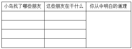 (4)仿照本文的写法,请你也编一则小鸟找朋友的小故事。