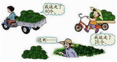 19. 解法1:直接从总数中分别减去两次运走的西瓜数.解答:85-40-26=19(个)解法2:先算一共运走多少个,再求还剩多少个.解答:40+26=66(个),85-66=19(个)