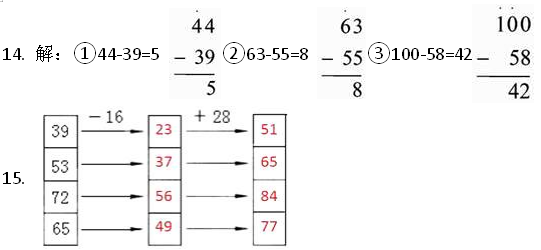 ①44-39= ②63-55= ③100-58=