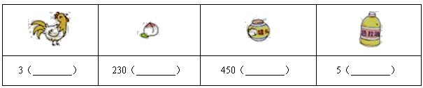 7.下图中三个杯子一样大,①号是空杯,②号③号杯里装了橙汁(如图),③号杯放在秤上指针应指向( )克。
