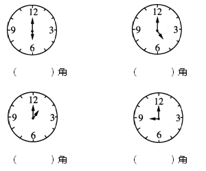 1. 下图中每个钟面上时针和分针组成的角各是什么角?(7分)