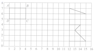 把原图形的各点先向下平移4格,再向右平移4格,即可得到平移后的图形。
