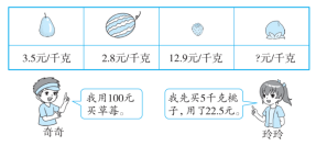 (3)(答案不唯一)如果玲玲用剩下的钱买梨,可以买多少千克梨?