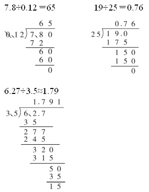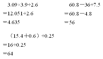3.09×3.9÷2.6 60.8-36÷7.5 (15.4+0.6)÷0.25