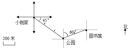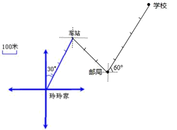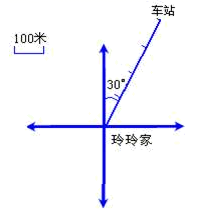 (2)玲玲放学回家时向西偏南60°方向行走500米到达邮局,再向西偏北45°方向行走300米到达车站,向南偏西30°方向行走400米到达玲玲家.