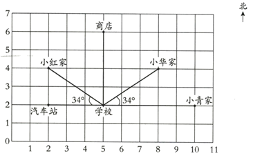 (2)小红家在点(2,4)处,其北偏东45°方向707m处是点( , );小华家在点(8,4)处,其( )偏( )( )°方向( )m处是小青家。