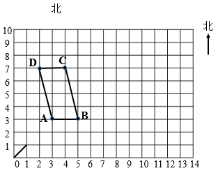 (2)请你在图中标出问题(1)中的A,B,C,D四个点,再用线段顺次连接(并首尾相连)。