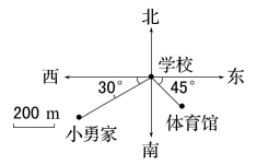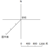 (2)体育馆在学校北偏东70°方向1000米处,请在图中表示出体育馆的位置。