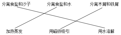 分离食盐和沙子 分离食盐和水 分离木屑和铁屑
