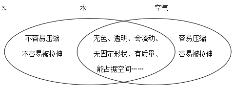 3. 通过观察、比较、发现水和空气有一些相同点和不同点。请在下图中填写完整。(8分)