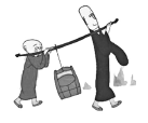 10. 如图,为了减轻后面小和尚的负担,前面的高瘦和尚应该怎么做( )。