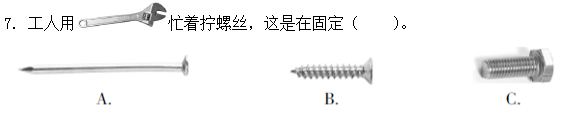 7. 工人用忙着拧螺丝,这是在固定( )。
