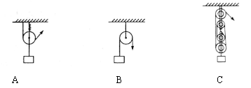 9. 要提起相同质量(80N)的重物,下面滑轮中最省力的是( )。