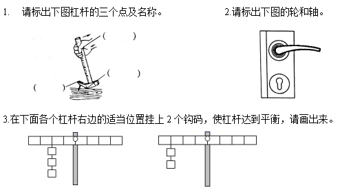 (1)首先画张示意图,找出杠杆的三个位置,并把字母填入括号里。