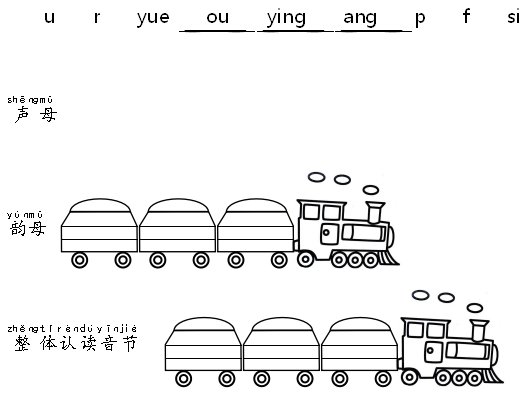 三、声母:r p f 韵母:u ou ang 整体认读音节:yue ying si