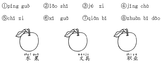 四、水果:①③⑥ 文具:⑤⑦⑧ 职业:②④