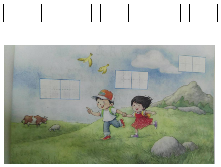 2.看(kàn)图(tú)写(xiě)字(zì),把(bǎ)字(zì)写(xiě)得(de)端(duān) 正(zhènɡ)、匀(yún) 称(chèn)。(1×5=5分)