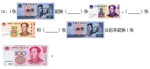 A.1张20元人民币,2张5元人民币,1张5角人民币。