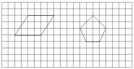 1.在方格纸上画出一个平行四边形和一个五边形。