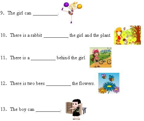 【详解】句意:女孩后面是一辆……。图片显示为女孩后面是一辆自行车,英语应用bike,故答案为bike。