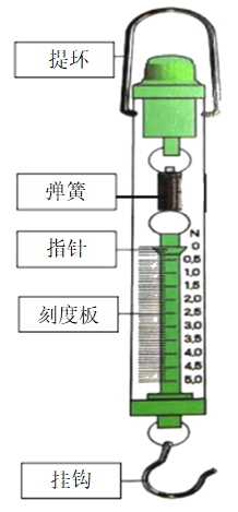 (2)弹簧测力计由提环、弹簧、指针、刻度板和挂钩组成。
