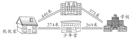 1.优优从家去学校有( )条路。他从家经过书店再到学校要走( )米,他从家经过少年宫再到学校要走( )米。