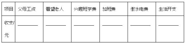 27.(6分)根据小张家五月份收入和支出的记录,用正数、负数填写下表。