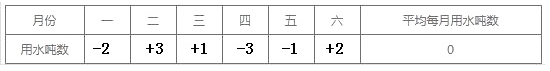 (2)(6分)如果把每月平均用水吨数记作0吨。请用正、负数表示出丽丽家每月用水吨数,