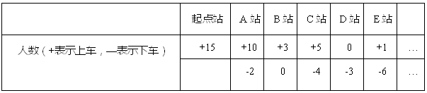 (1)(3分)在表格内用正、负数记录公交车的人数变动情况。