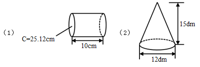 16.底面半径是4cm,高是8cm的圆柱体的侧面积是( )cm2。底面直径是6dm,高是8dm的圆锥的体积是( )dm3。