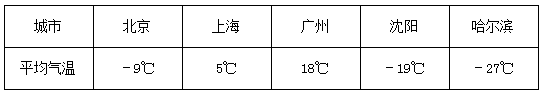 答:上海和北京的平均气温相差14摄氏度,沈阳和哈尔滨的平均气温相差8摄氏度。