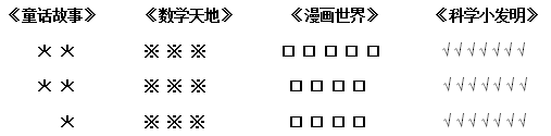 五、下面是二一班同学一星期课外阅读读书册数类别统计情况(4题,共10分)。