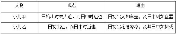 一儿曰:“日初出沧沧凉凉,及其日中如探汤,此不为近者热而远者凉乎?”
