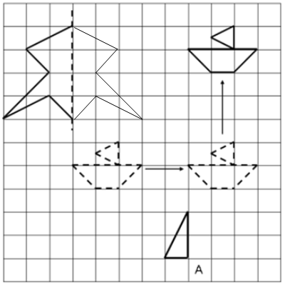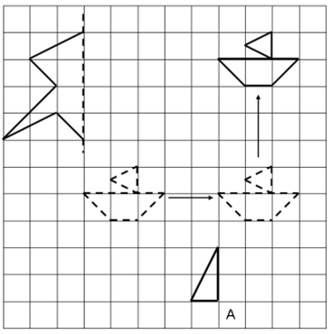 (2)图中的小船是经过向( )平移( )格,再向( )平移( )格得来的。