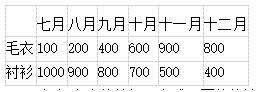 3.家乐福超市2019年下半年毛衣、衬衫销售情况如下表。
