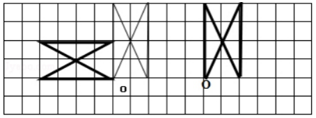 图形绕O点顺时针旋转90°,再向右平移5格.