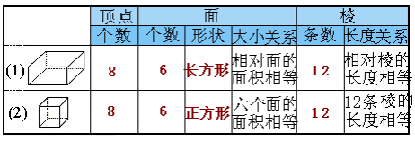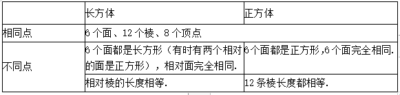 ①比较正方体和长方体的异同:从点、棱、面三方面比较长方体和正方体之间的相同点和不同点.