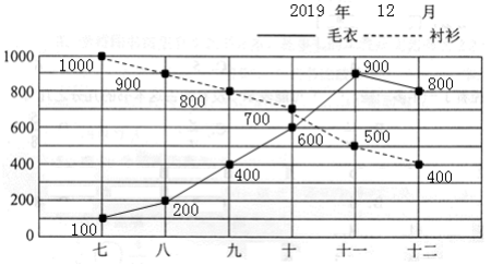 (4)预测2020年1月毛衣的销售量会( ),衬衫的销售量会( )。(填“上升”或“下降”)