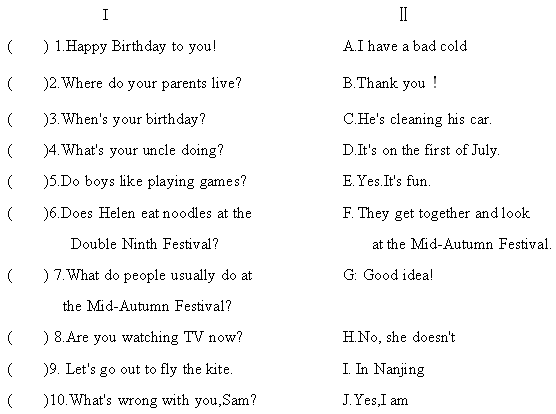 五、从Ⅱ栏中选出与I栏相对应的答句。