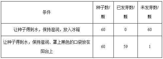 (1)实验中,需要改变种子所处的环境,上表中改变的条件是___________和___________。