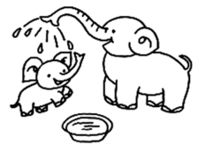 16.一天象妈妈在给小象洗澡。 象妈妈用鼻子吸了一口水,“噗”的一下,象妈妈鼻子里的水哗哗的喷洒在小象的头上和身上。小象开心的说:“真舒服,真凉爽啊!”。象妈妈看见小象开心的样子高兴极了。不一会儿,小象就洗完了。