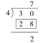 19.用30朵花扎花束,每4朵扎成一束,可以扎多少束?下面竖式中28表示( ).